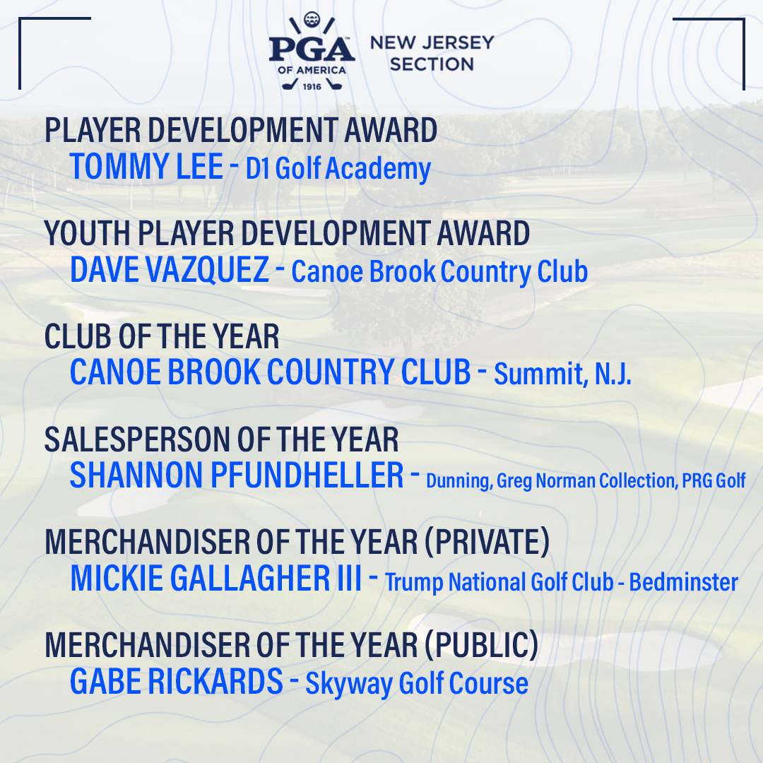 The New Jersey Section has been well represented at the national level by dozens of PGA Professionals being nominated for their dedication to the game of golf. Over the course of the Sections history, over 13 winners have come from the New Jersey PGA.